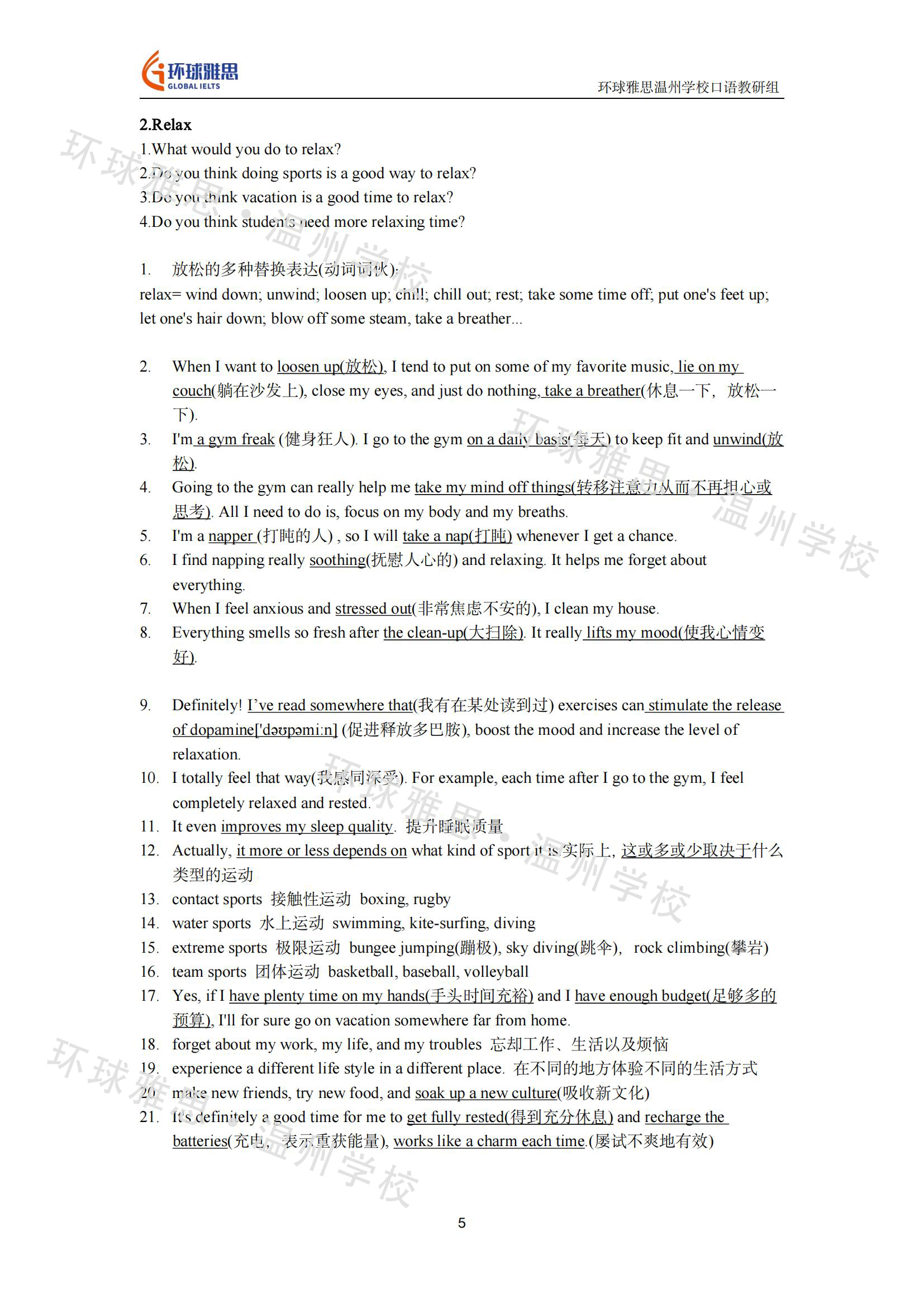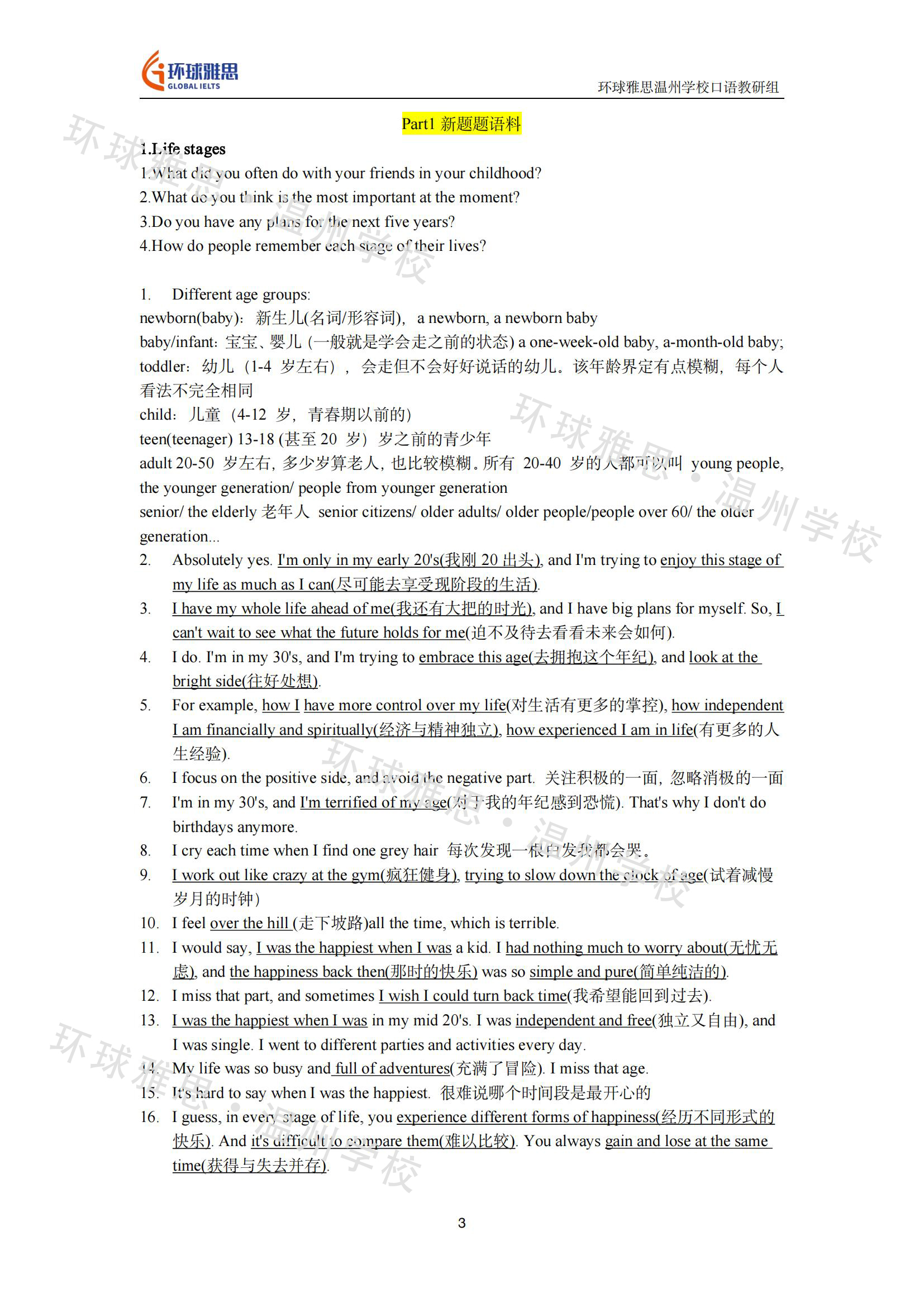 这次环球雅思的老师们又特意准备了其相对应的答案