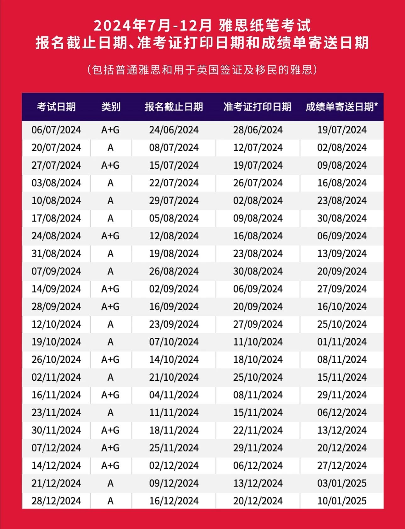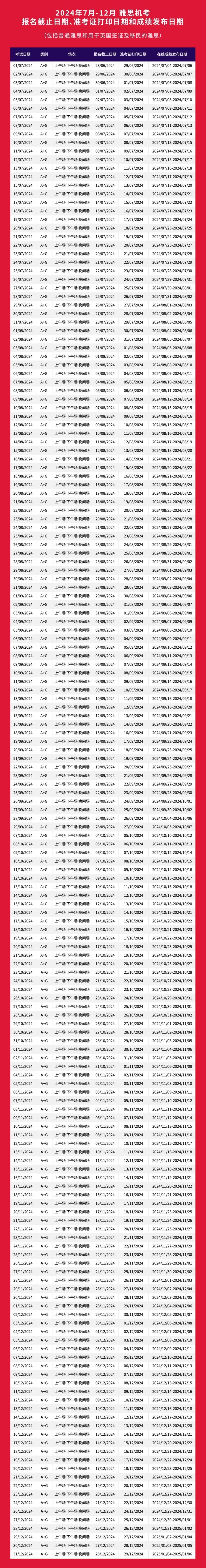 收藏|2024下半年雅思考试日历!