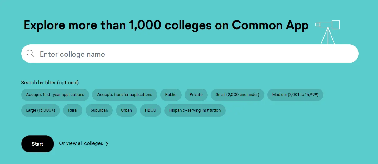 创建账户并探索了接受Common App的大学,可以开始添加大学了。