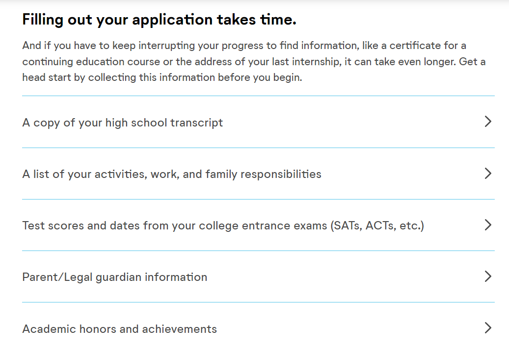 注册时将需要一些基本信息,例如本人姓名、家庭住址、电话号码和出生日期等。请务必使用在学校官方文件和标准化考试中出现的法定姓名,这将确保大学可以将文件匹配到正确的人。