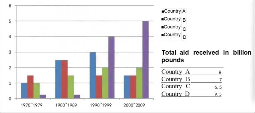 Concerning the remaining states, the amounts provided to them were no lower than 1 billion pounds each at first. After climbing to and becoming identical at approximately 2.5 billion pounds between 1980 and 1989, the gap widened, with that of nation A further rising to 3 billion pounds and nation B’s aid lessening back to roughly 1.5 billion pounds. Finally, country B’s level stabilized and equaled once more with that of country A, but the total of the latter was higher than the former by 1 billion pounds.
