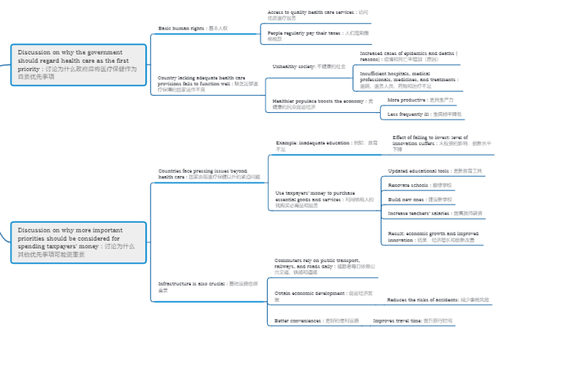On the other hand, it cannot be denied that countries also face pressing issues beyond health care, such as inadequate education. If the government fails to invest in this sector, the economy and the country's level of innovation may suffer. By using taxpayers' money to purchase updated educational tools, renovate schools, build new ones, and increase teachers’ salaries, economic growth and innovation are likely to follow. Furthermore, infrastructure development is also crucial. Daily, we rely on public transportation, railways, and roads. If these are adequate and effectively maintained, countries can obtain economic development and gain numerous conveniences since it reduces risk of accidents and improves travel time.