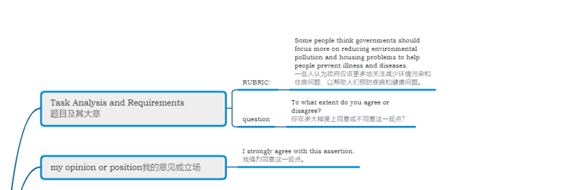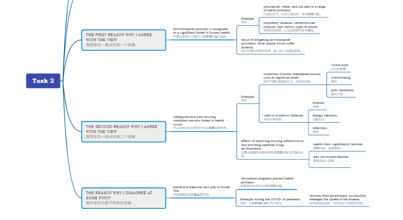 1、题目及其大意 Some people think governments should focus more on reducing environmental pollution and housing problems to help people prevent illness and diseases. To what extent do you agree or disagree?
