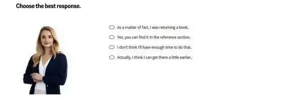 - 形式:系统播一句日常提问(如“Could you tell me where the printing room is?”),三选一选出*自然的回应。
