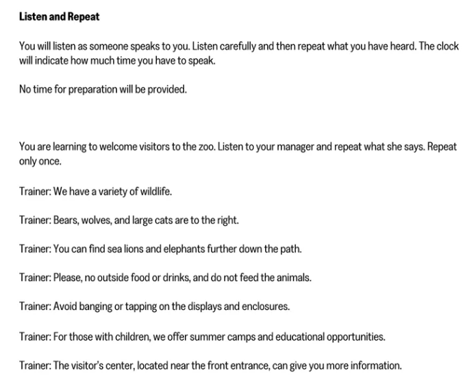 - 形式:系统逐句播放音频,每句长度5–12秒,共6句,考生需在音频停后立即完整复述。