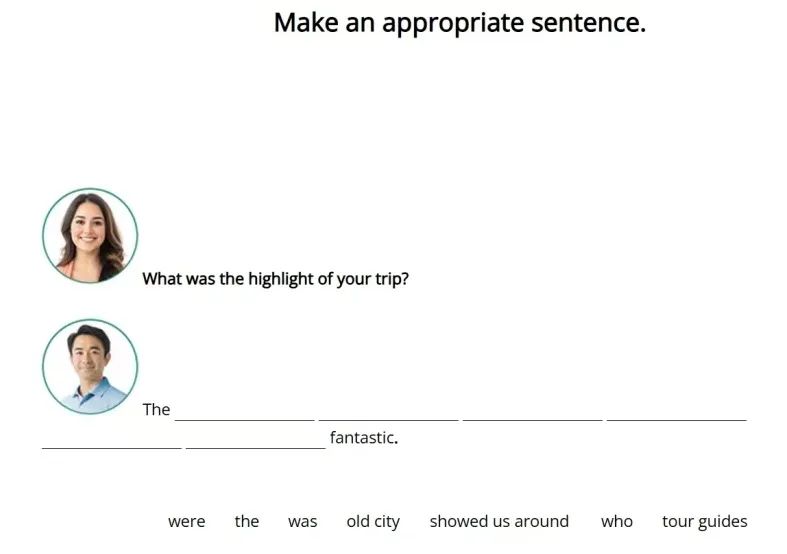 - 形式:系统给出乱序短语或单词,考生拖拽重组为语法正确的句子。