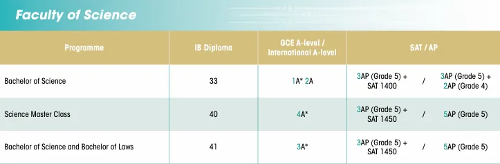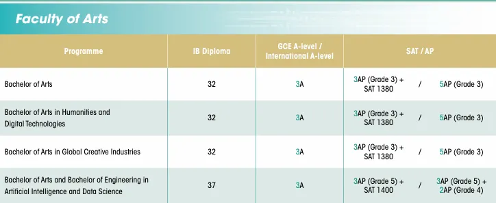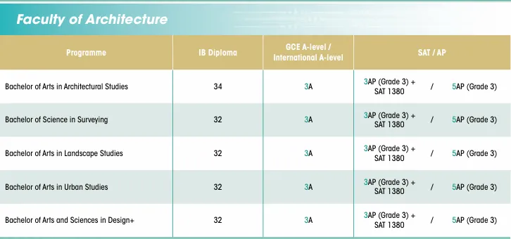 核心*要求:A-Level 3A;IB 32-34 分;SAT/AP 为3门AP(3 分)+SAT1380,或5门AP(3 分)
