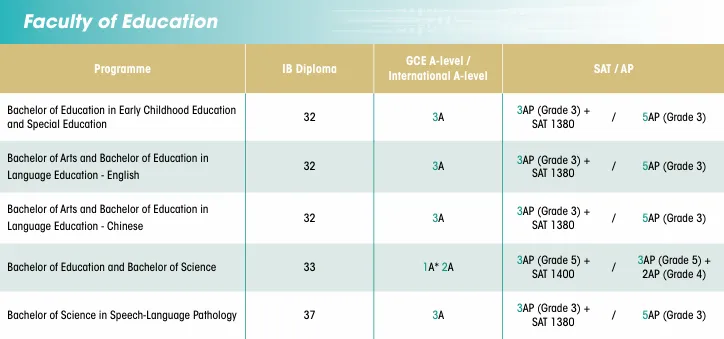 关键变动:教育与科学专业门槛上调,IB 从32分涨至33分,A-Level从3A涨至1A*2A;早期教育、语言教育等专业要求未变,仍为A-Level 3A+IB 32 分。