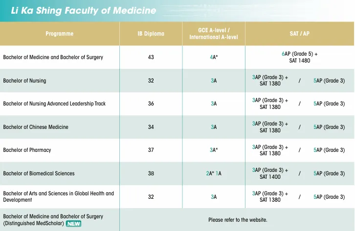 关键变动:药学专业 A-Level 从2A*1A上涨至3A*,生物医学科学从 3A 涨至 2A*1A;新增 “医学学士和外科学学士(杰出医学学者)” 专业,具体要求待官网更新;护理、中医药等专业要求不变。