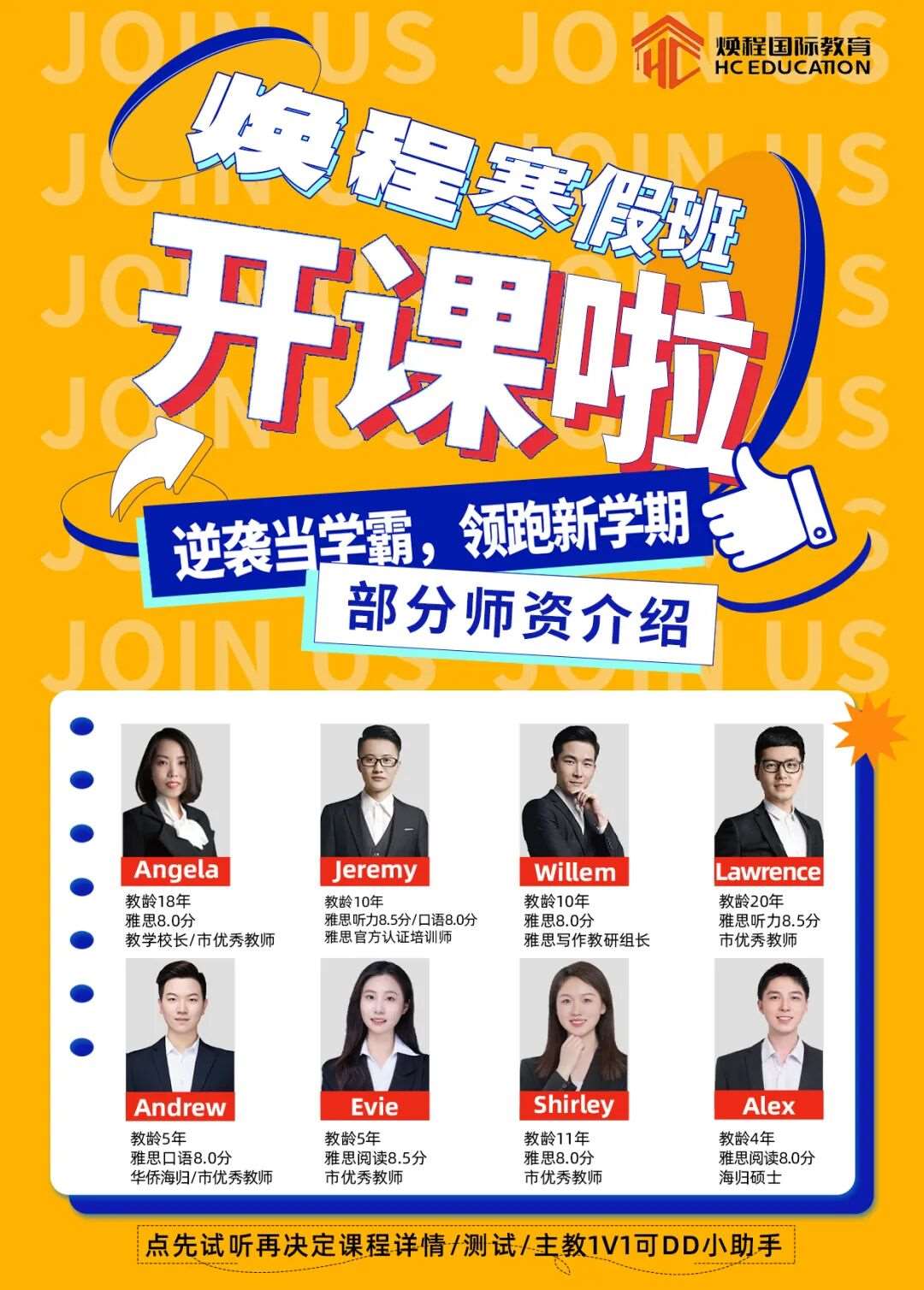 选对老师,路上就能 “一路狂飙”!焕程寒假班的师资,是平均教龄8年+、超80%海外本硕背景的8分老师天团👇