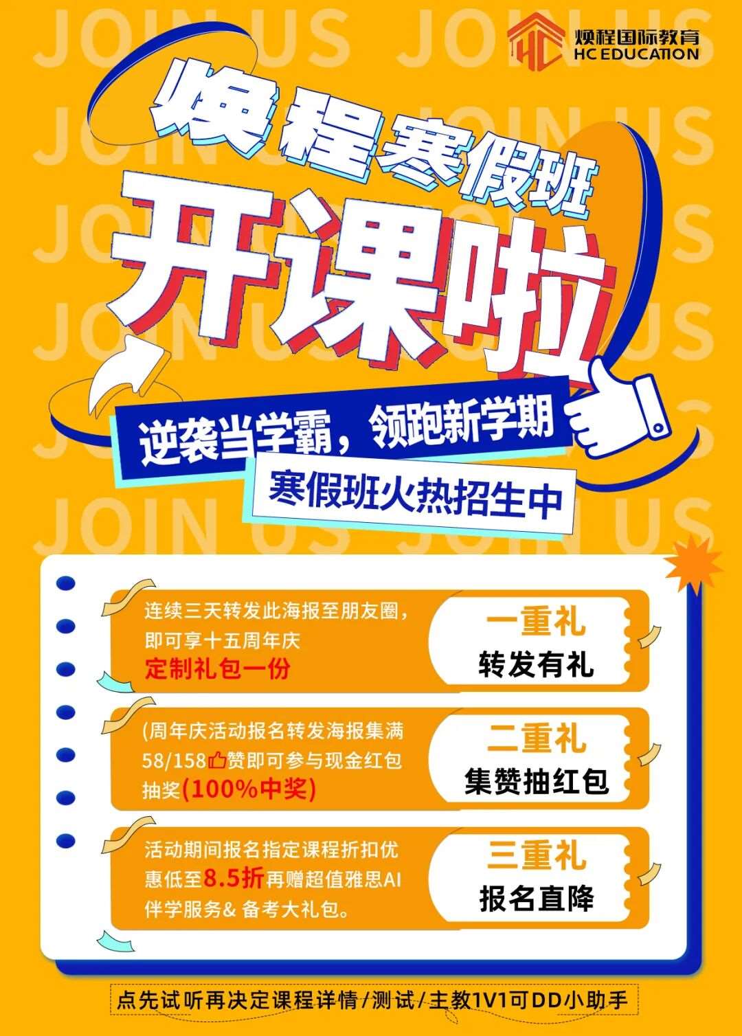 想上车焕程寒假班的宝子看过来🚀 除了课程硬核,现在报名还能叠buff薅福利,三重惊喜直接拉满👇