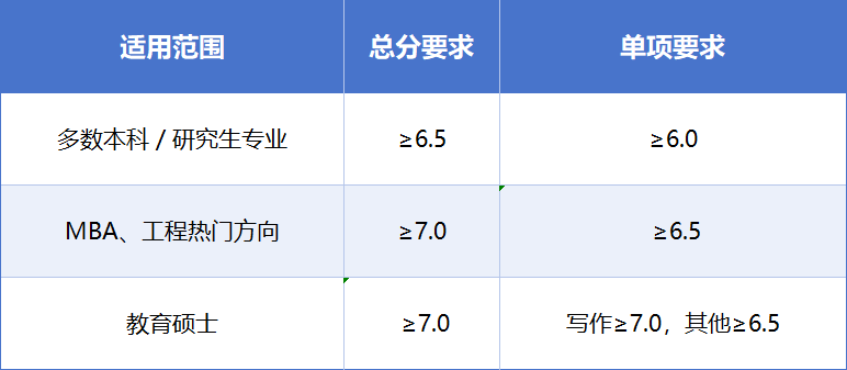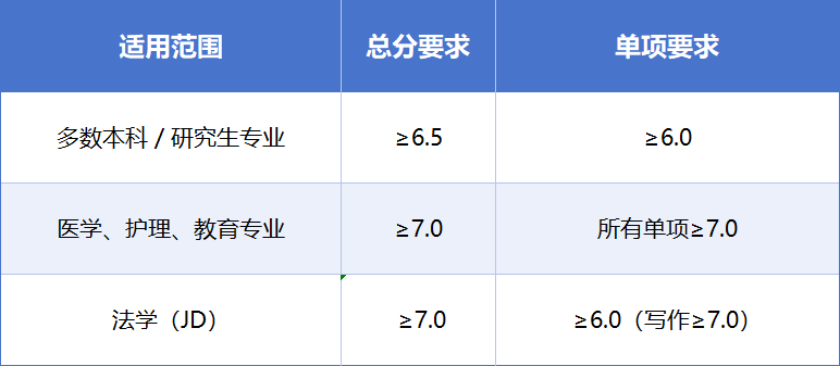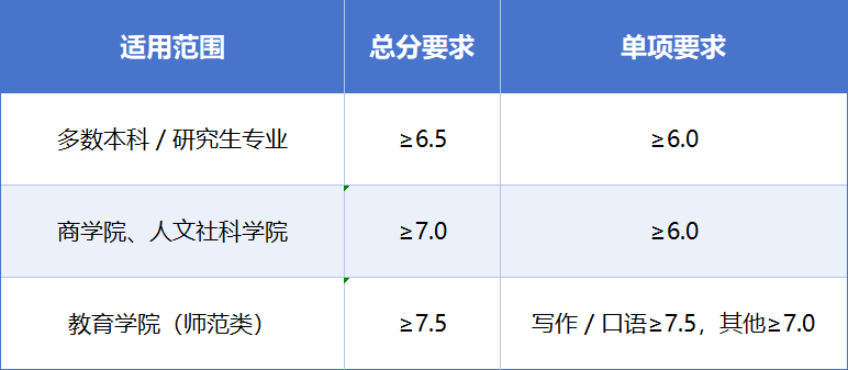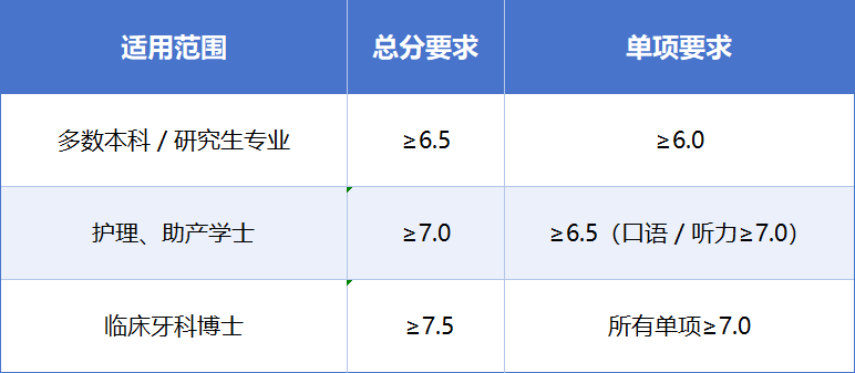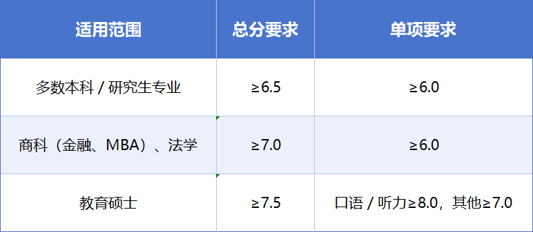 • 雅思要求: