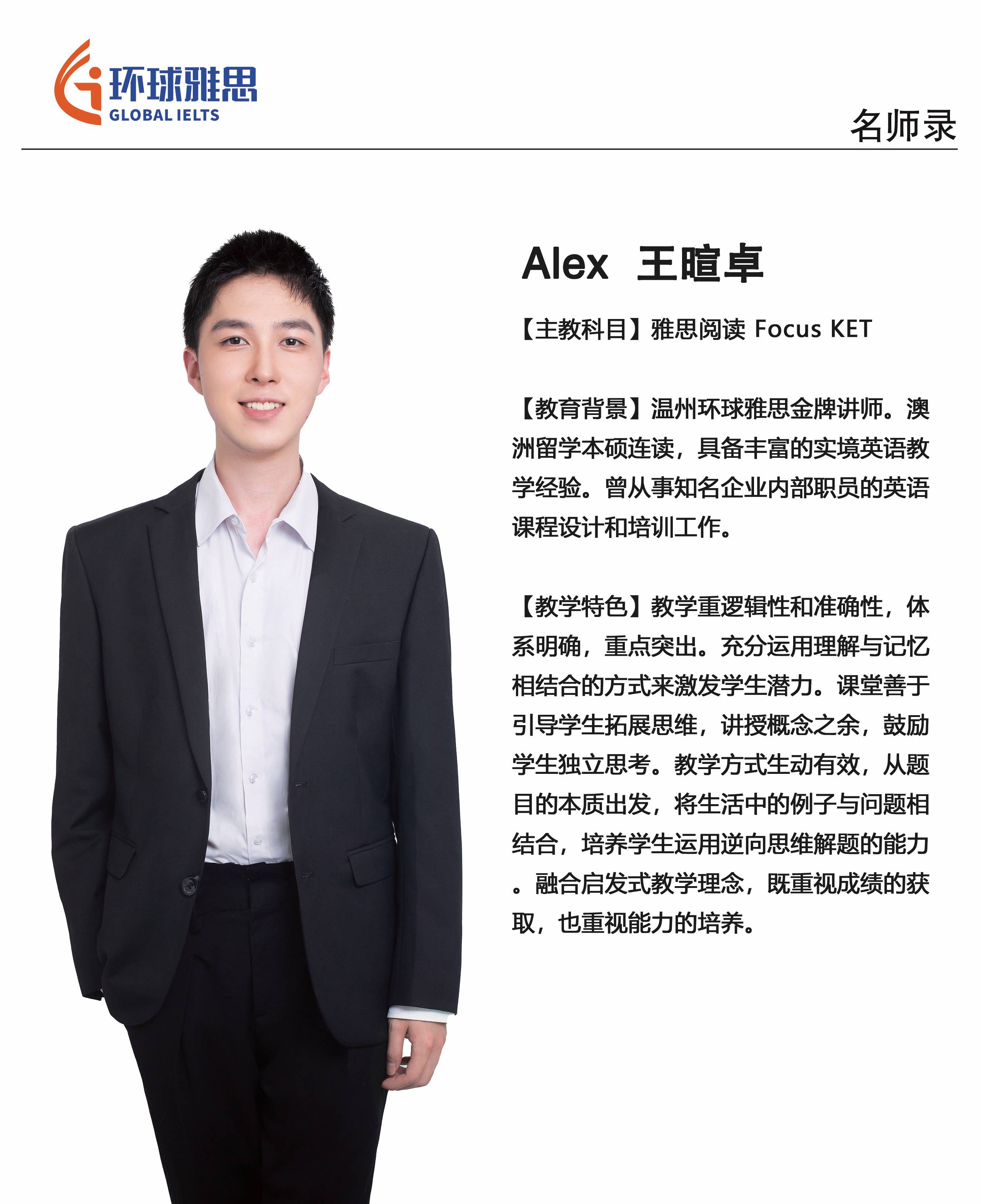 您好,我是Alex 王暄卓,目前因有事不在线,如有问题请先给我留言,我稍后给您回复。